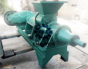 炭粉制棒機這臺是定制機,上邊一臺只擠壓出料,出來的料剛好進入下邊一臺制棒機進料口,利用螺旋擠壓、推進的原理制出的高壓...